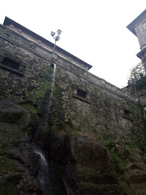 Che poi tutto il giorno dentro casa non ci si può stare, diventa una questione di sopravvivenza, di nervi a chi sopporta di più i capricci e le stranezze dell'altro e, senza badare alle avverse condizioni meteo - che tanto terribili non sono - ci avventuriamo nella zona umida e fresca del paesello a scattare qualche foto ricordo delle foglie autunnali, delle gocce di pioggia che cadono nella vasca grande, del nostro Palazzo storico più interessante e maltrattato.